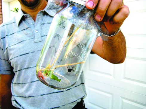 Nella foto in basso Giglio mostra la “vedova nera” trovata