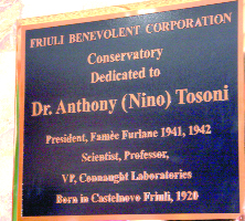 una targa ricordo,in bronzo, nei locali del Friuli Terrace nel salone