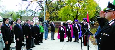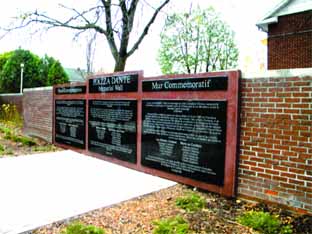 I nomi degli italocanadesi di Ottawa internati dal governo durante la Seconda Guerra Mondiale, insieme ai nomi di quelli morti in guerra, arruolati nell’esercito canadese appaiono nel “Muro della Memoria” inaugurato solennemente ad Ottawa, a Piazza Dante, nell’ambito del programma federale del “riconoscimento storico” dell’in-giustizia subita dallla nostra collettivita’. Il monumento e’ stato ideato e realizzato dal Centro Comunitario Italiano di Ottawa (foto Luciano Gonnella)